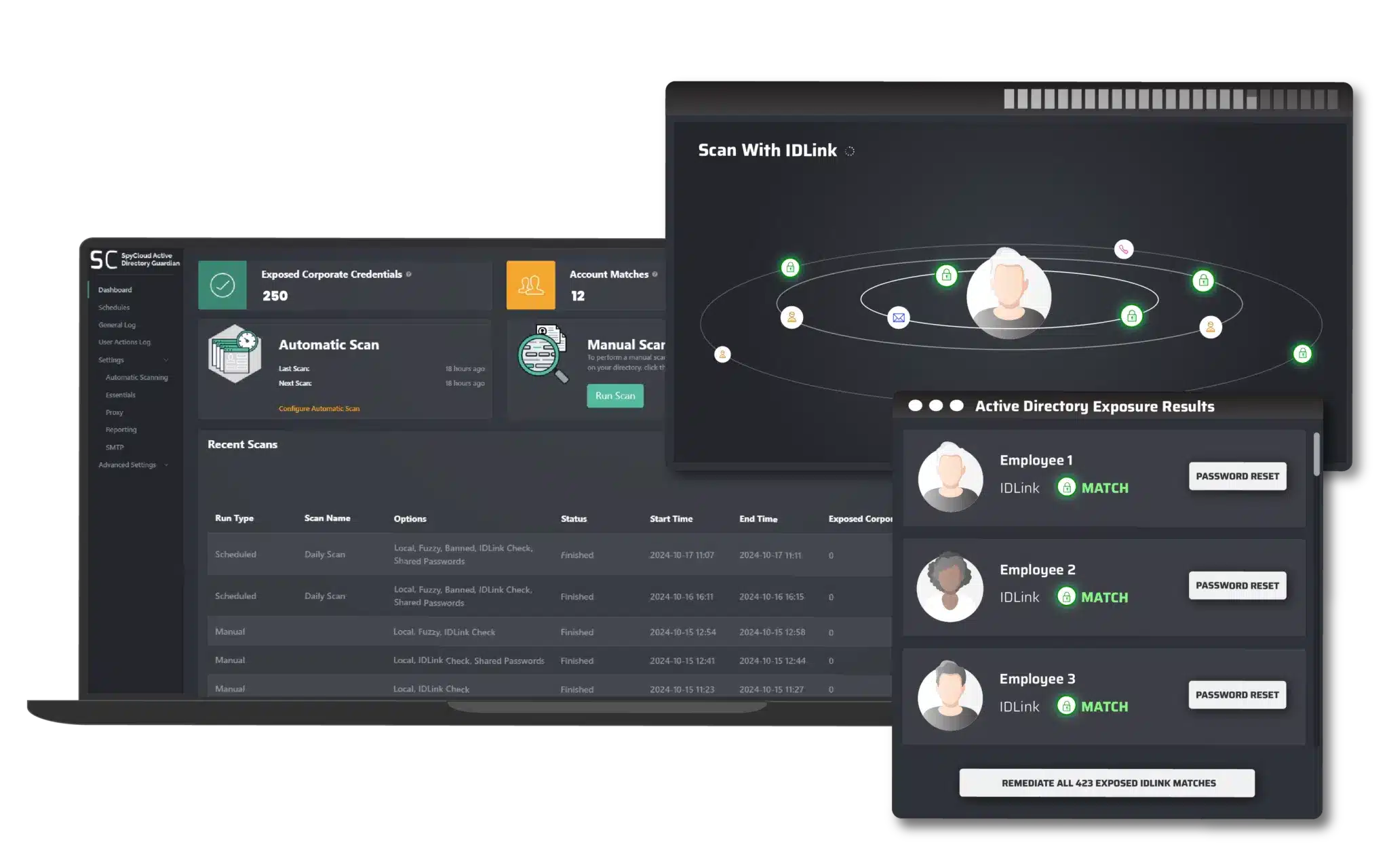Configure scanning options for timing and depth to match your workforce’s behavior, including IDLink analytics to detect hidden exposures.