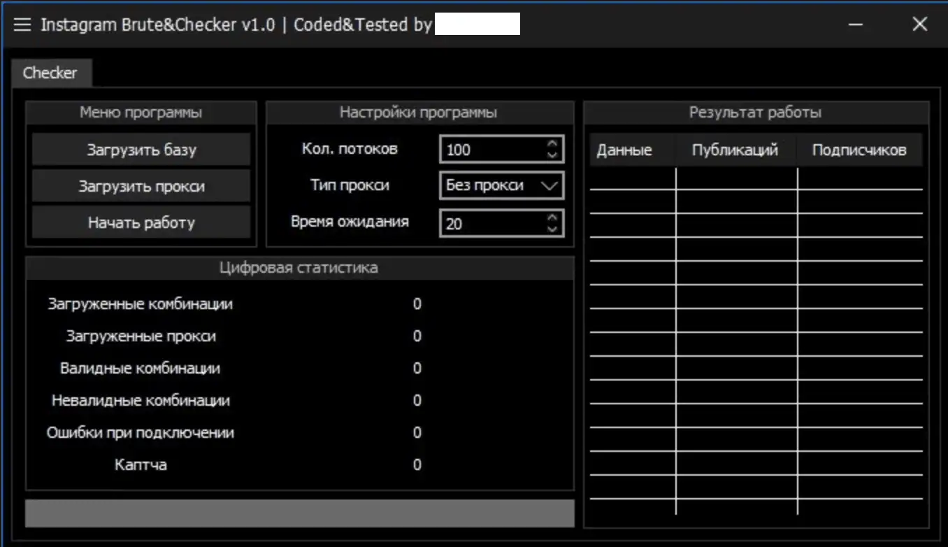Figure 16: Russian “Instagram Bruteforcing Tool and Checker.”