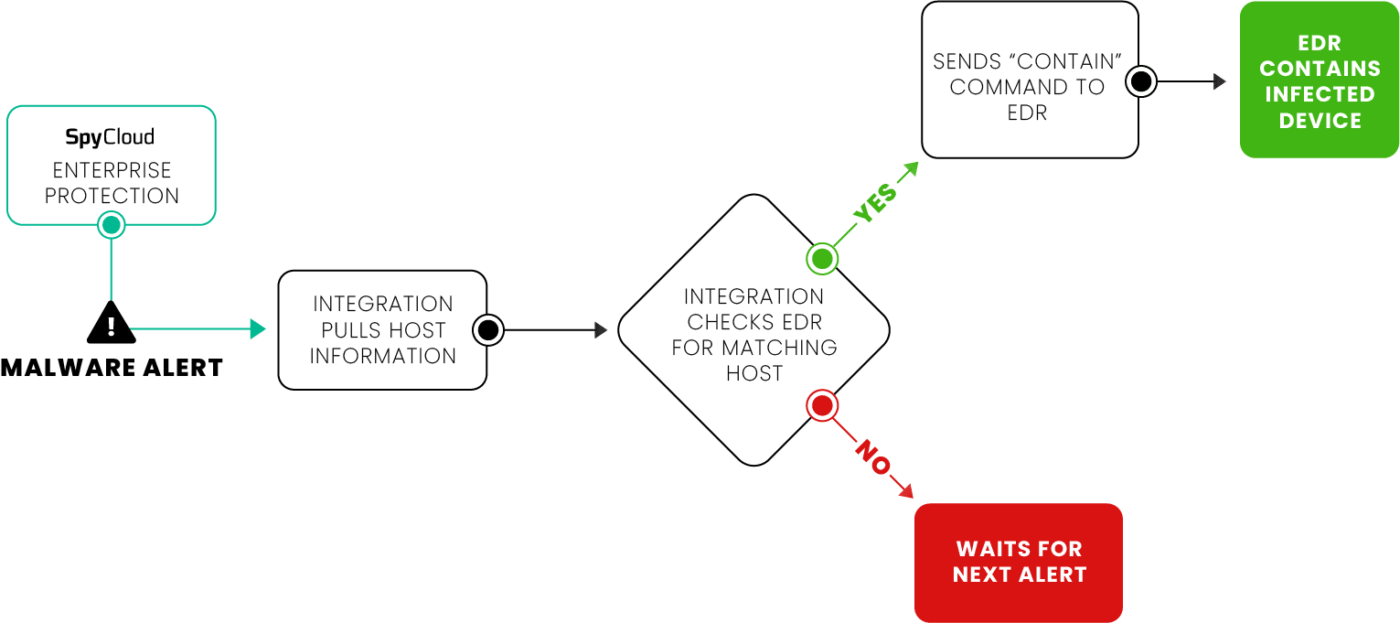 SpyCloud does the heavy lifting, analyzing recaptured malware records to determine the hostname. Upon matching, the steps automatically kick-off to alert you directly in your EDR tool.